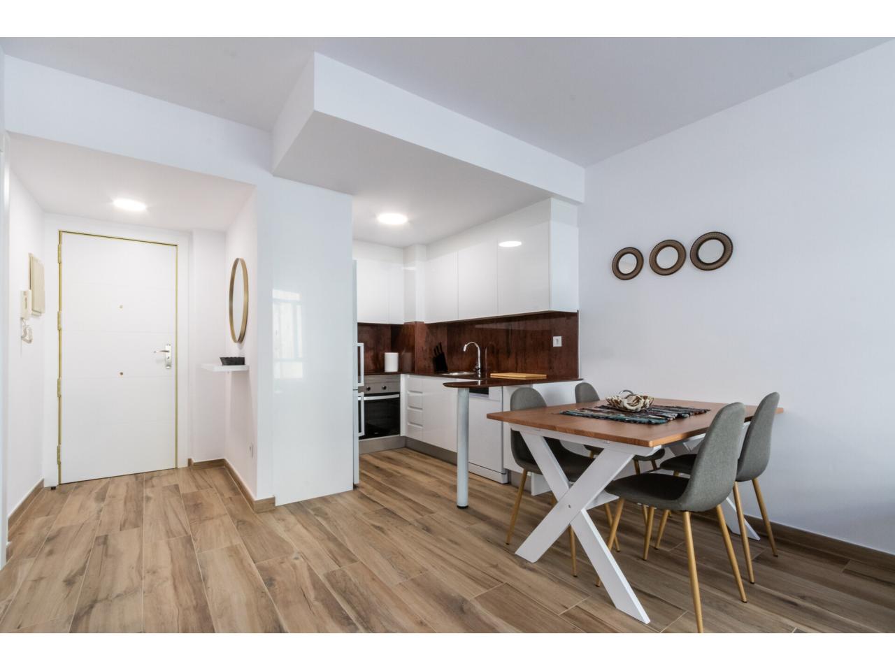 Consta de comedor con cocina abierta, baño y dos dormitorios con armarios empotrados